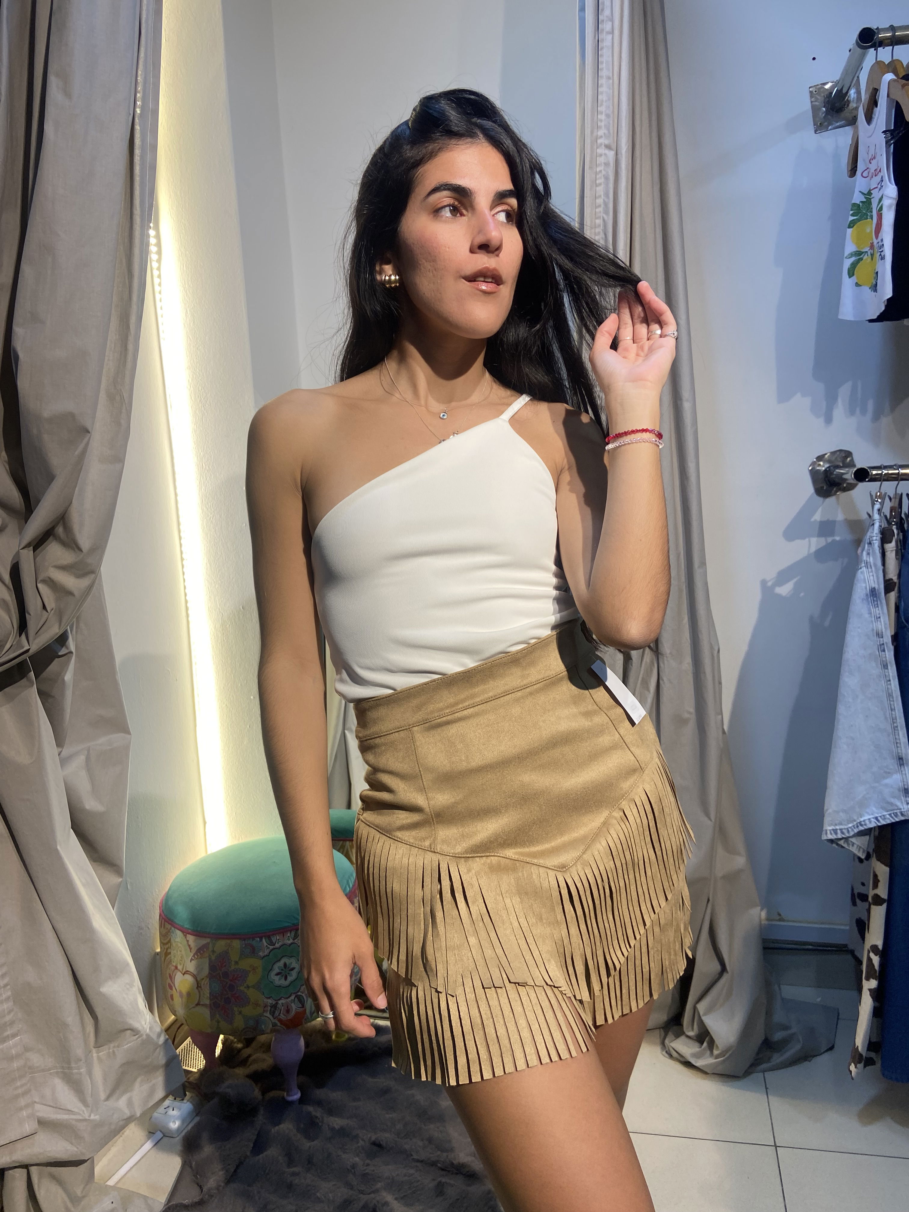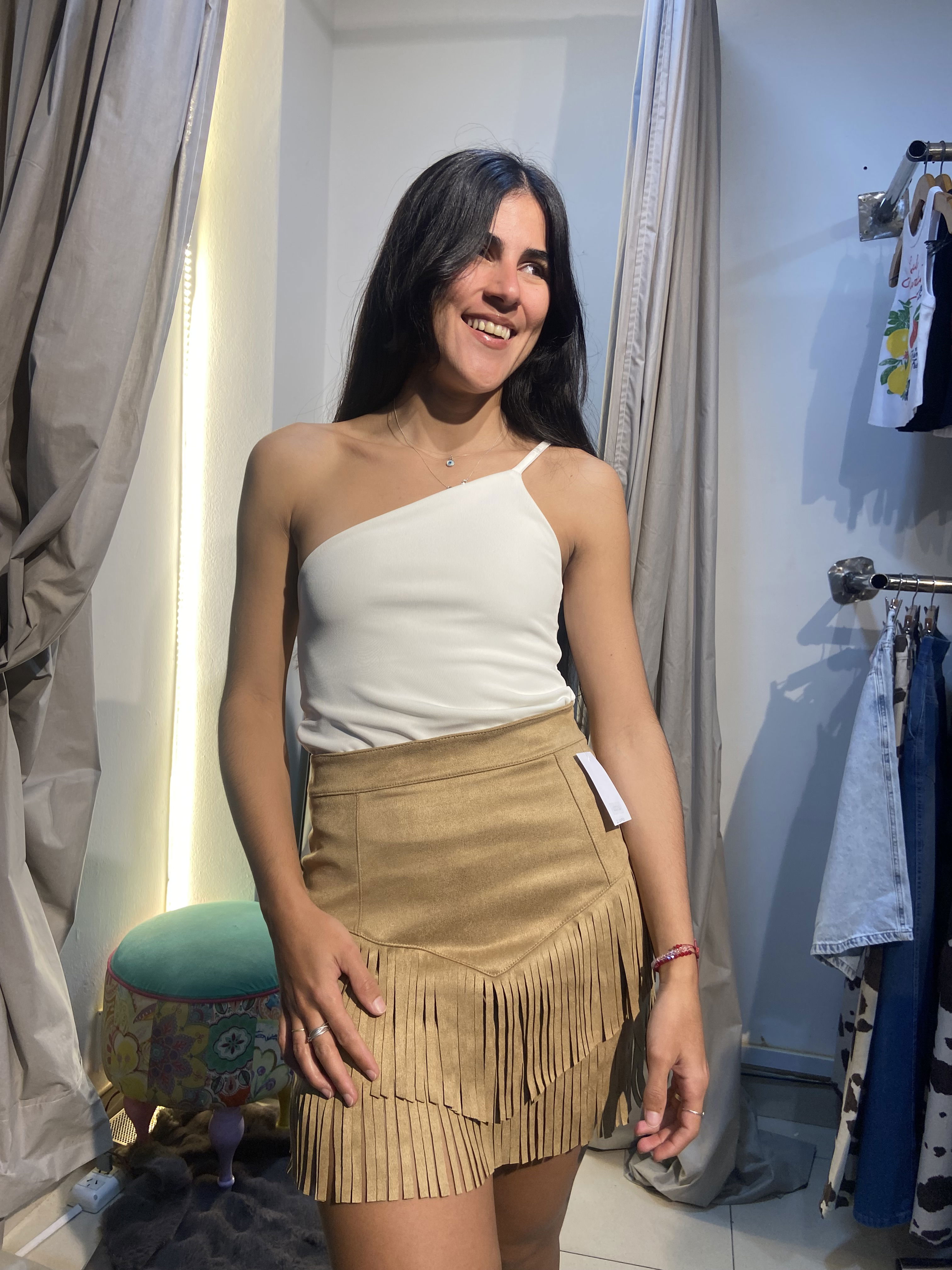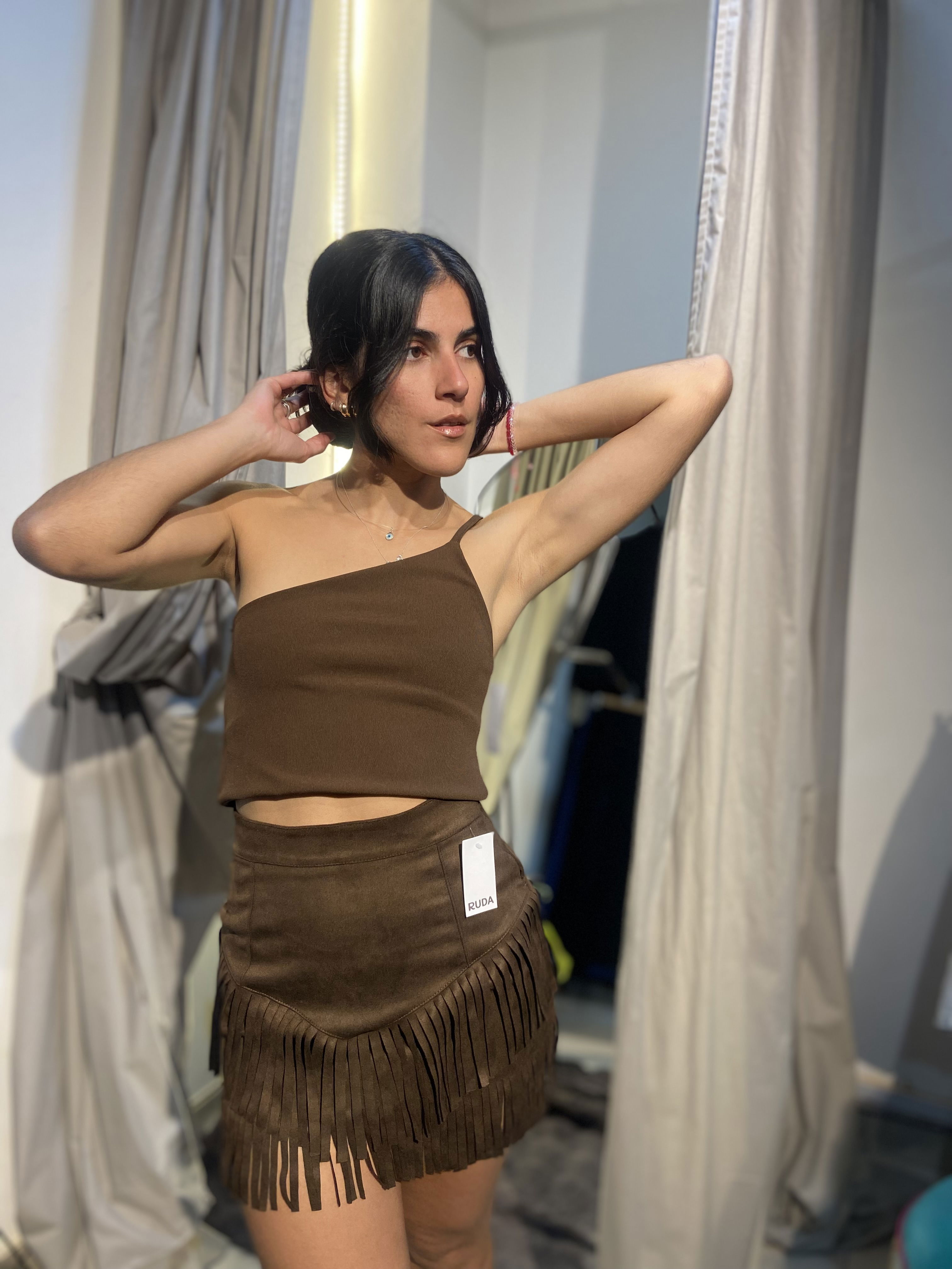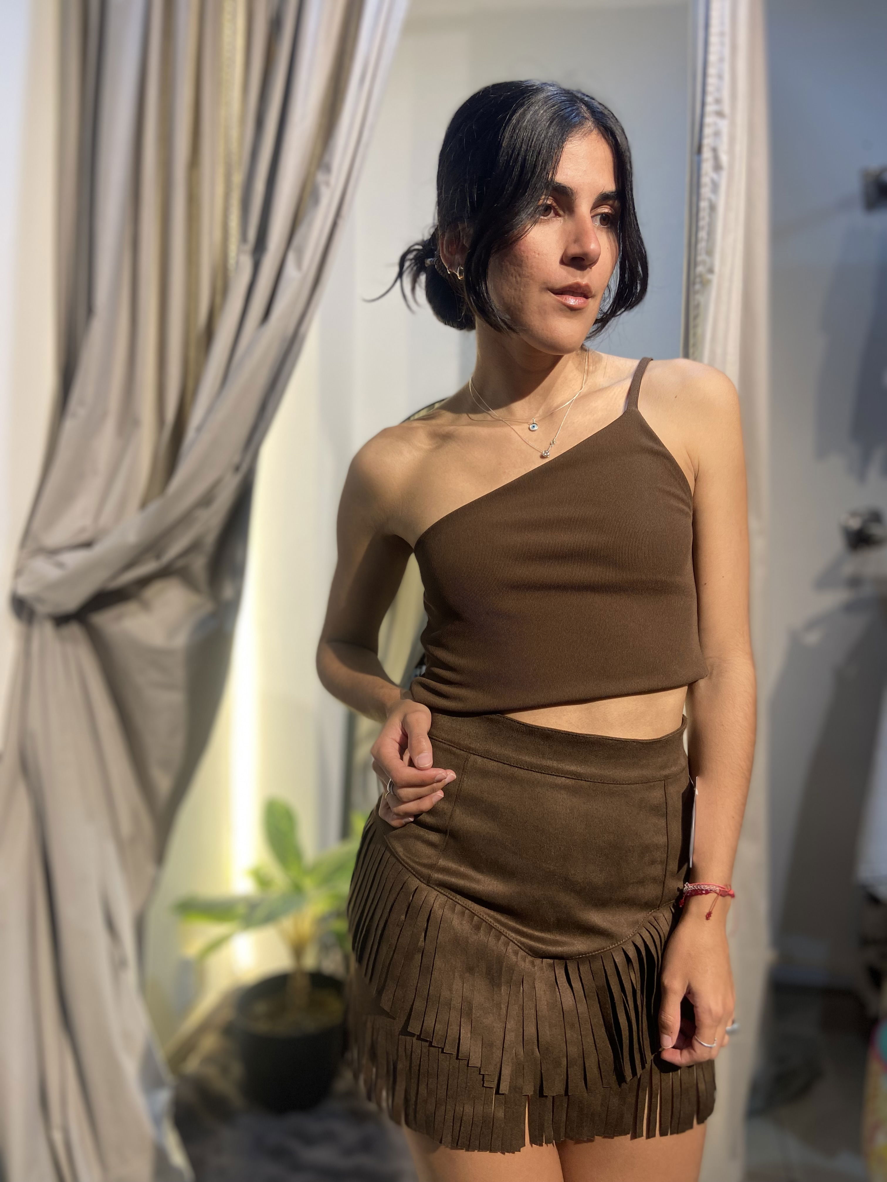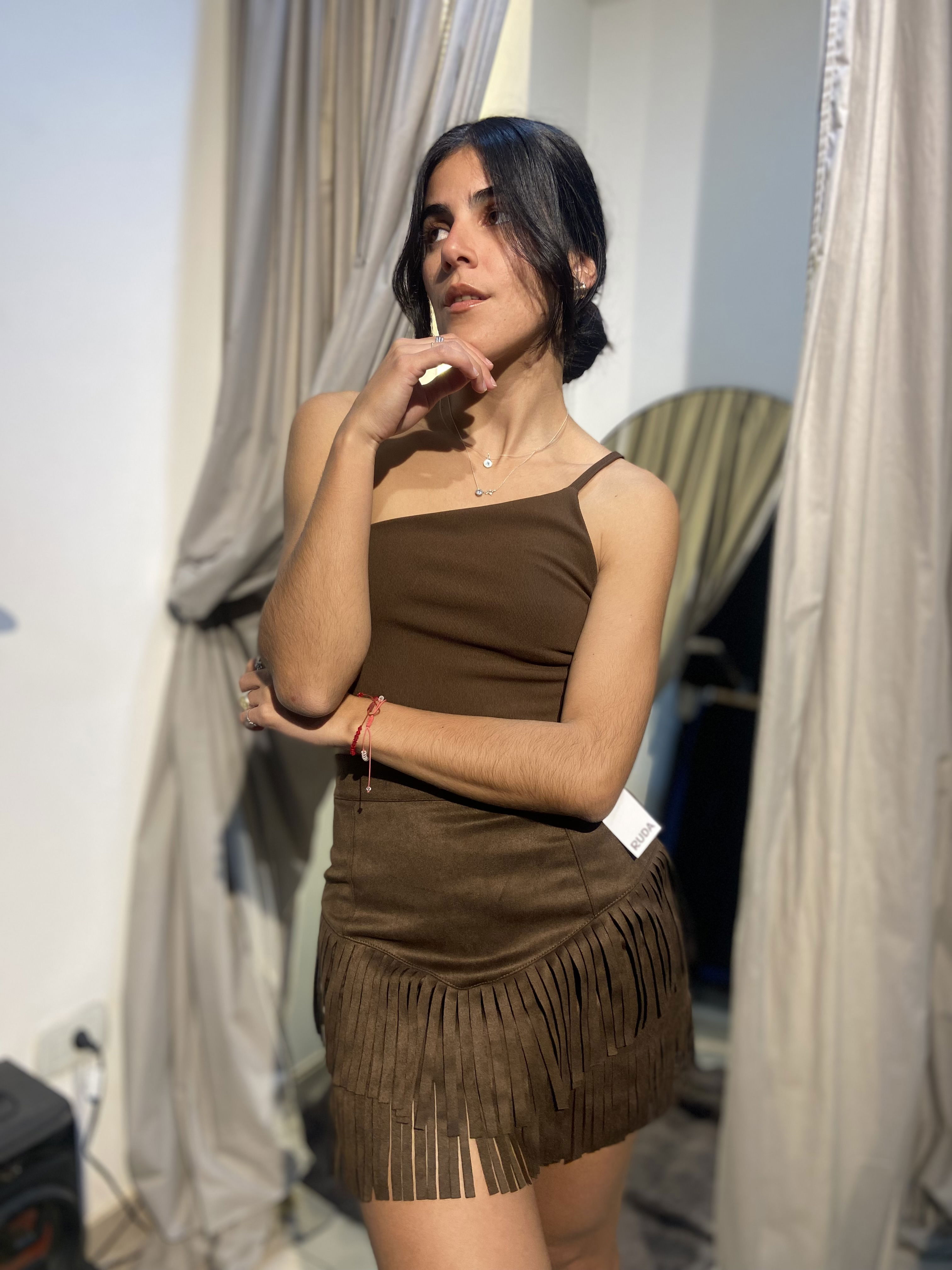 Pollera con flecos, su diseño elegante y descontracturado realza cualquier outfit 🤎😎🫦