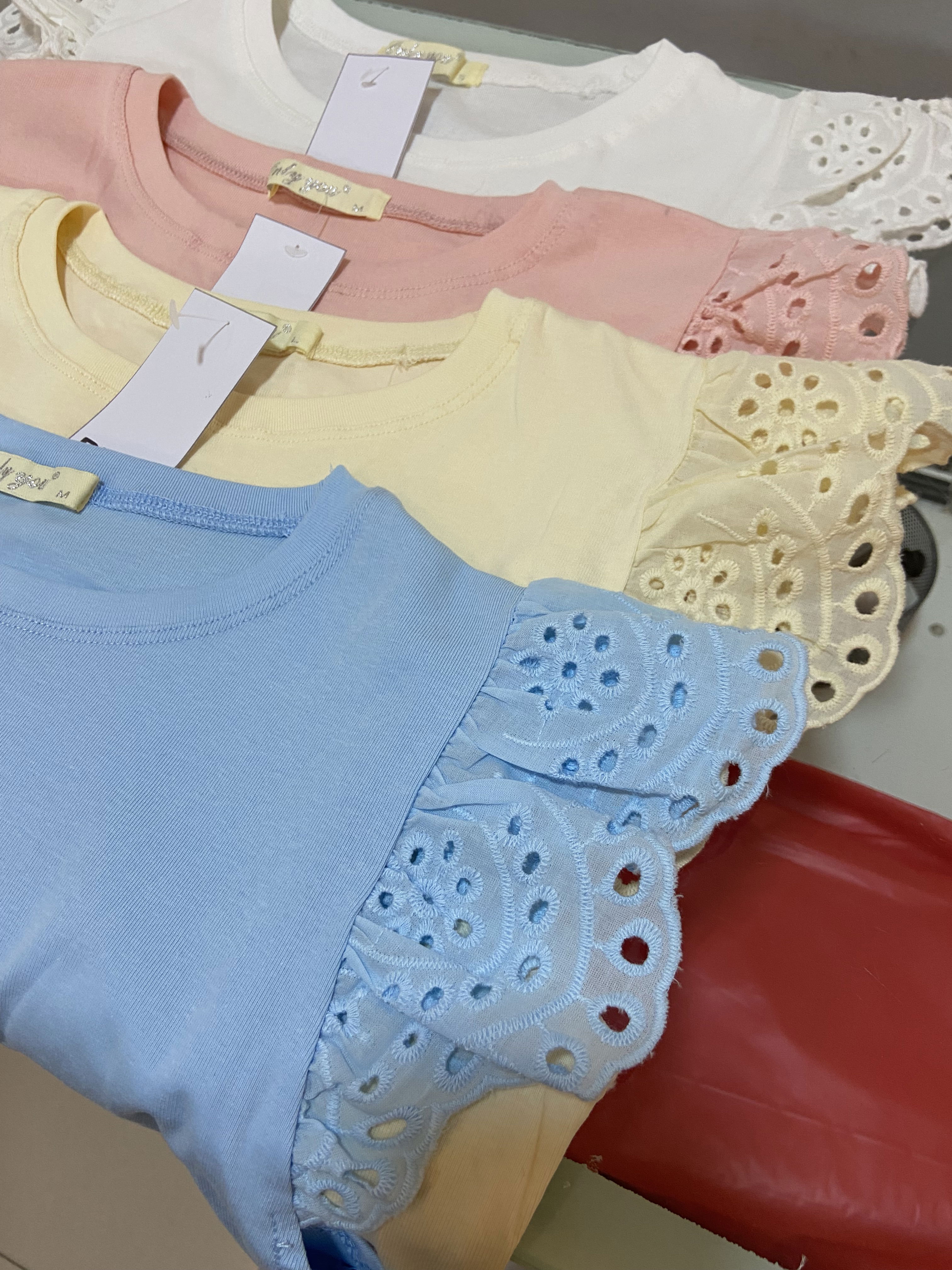 Reme de algodón elastizado, con mangas de brodery que le dan el toque romántico y elegante, sumado a los colores que son lo más tierno ✨🤩🌸